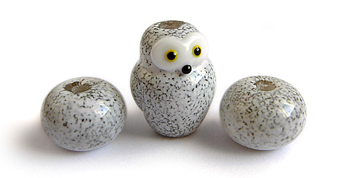 A cute trio of spckled snowy owl beads.