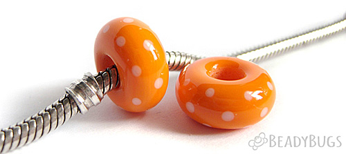 white spotted duck beads, with soft orange beaks and neck. They both measure